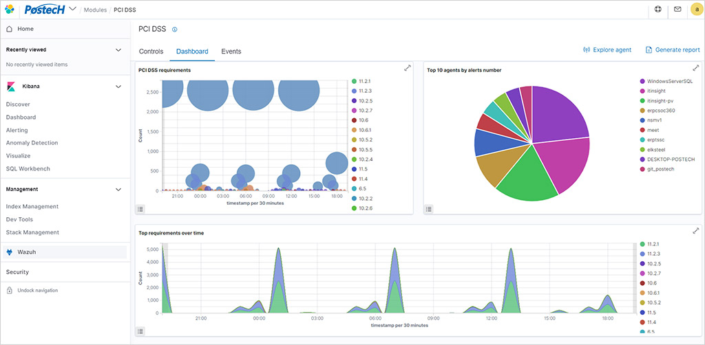 The Postech Compliance SIEM provides the ability to map the security controls required by standards such as PCI DSS, HIPAA, GDPR, CNBV and others. The solution aggregates and analyzes data from multiple systems, mapping security alerts as compliance requirements.